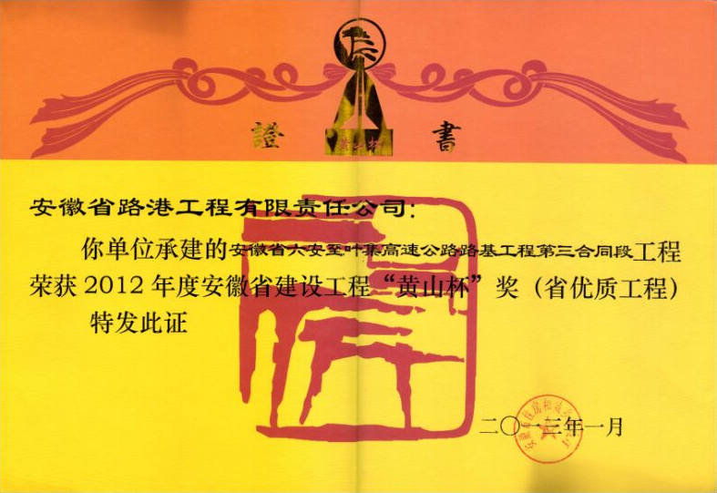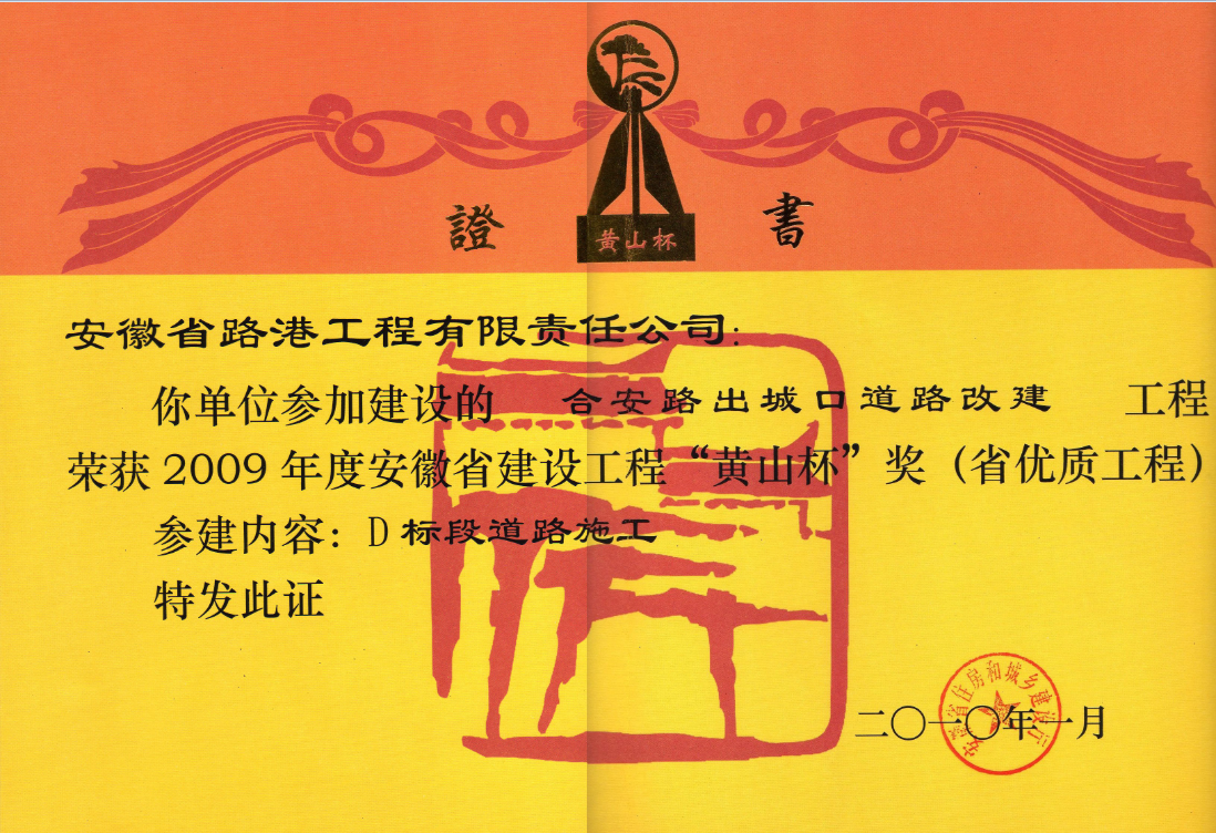 安徽省建設(shè)工程“黃山杯”獎(jiǎng)(省優(yōu)質(zhì)工程)
