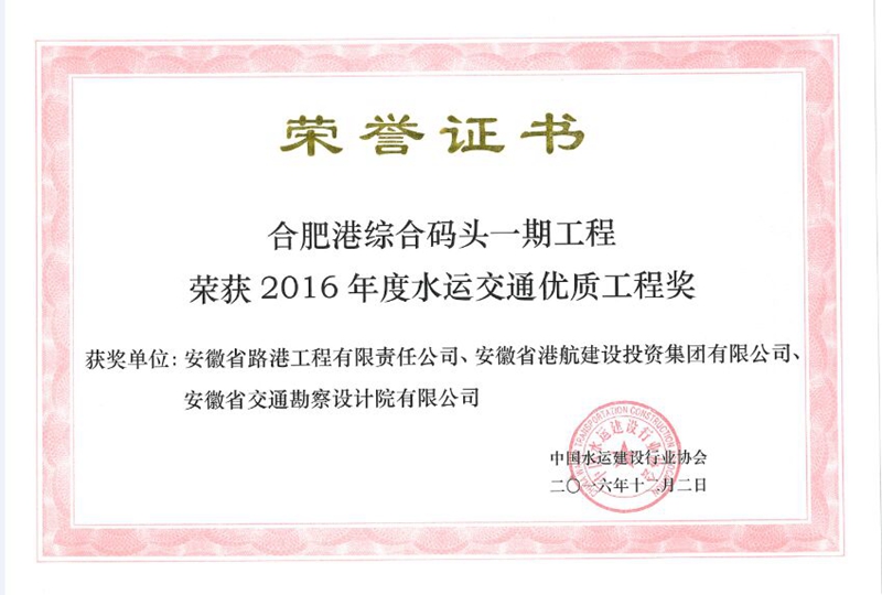 全國水運(yùn)交通優(yōu)質(zhì)工程獎(jiǎng)