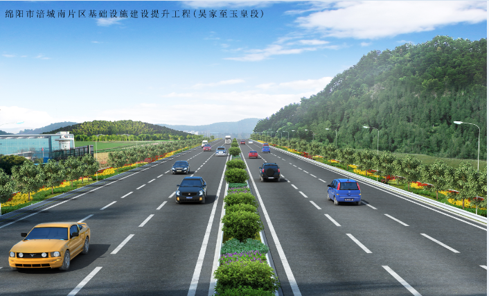 該項(xiàng)目是二級(jí)公路拓寬為一級(jí)公路,路基總寬度23~33米,路面結(jié)構(gòu)類(lèi)型為瀝青混凝土路面,為配合道路工程的提升,在路基兩側(cè)設(shè)置綠化帶,路線起于綿陽(yáng)市二環(huán)路吳家鳳凰立交,沿現(xiàn)有道路前行,經(jīng)吳家鎮(zhèn)、楊家鎮(zhèn)、玉皇鎮(zhèn),止于涪城區(qū)與中江縣交界處。