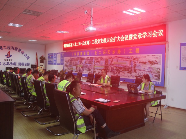 為響應(yīng)集團(tuán)黨委及公司黨委關(guān)于“兩學(xué)一做”學(xué)習(xí)教育的有關(guān)要求,銅陵路高架(北二環(huán)-天水路)工程項(xiàng)目黨支部于6月22日下午召開了項(xiàng)目黨支部擴(kuò)大會(huì)議,重點(diǎn)組織了對(duì)黨章的集體學(xué)習(xí),項(xiàng)目部在職黨員、入黨積極分子及部分群眾代表參加了會(huì)議。