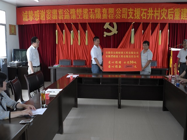 一方有難,八方支援。安徽路港六安市文華路橋項(xiàng)目部在六安市重點(diǎn)局的帶領(lǐng)下,全力幫助石井村打贏抗洪搶險(xiǎn)攻堅(jiān)戰(zhàn),共同度過難關(guān)。為盡快修復(fù)被洪水沖毀的道路,解決災(zāi)后重建及群眾出行的問題,該項(xiàng)目部向?yàn)?zāi)區(qū)捐贈水泥15噸,資金5000元。