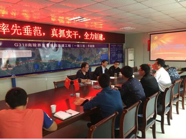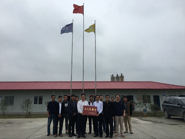10月21日上午,集團公司工會副主席吳曉伍、安徽三建公司工會主管程鵬一行蒞臨安徽路港G318南陵界至青陽段改建工程項目部考核驗收“工人先鋒號”創(chuàng)建工作并現(xiàn)場授牌,公司紀(jì)委書記、工會主席干戈陪同。