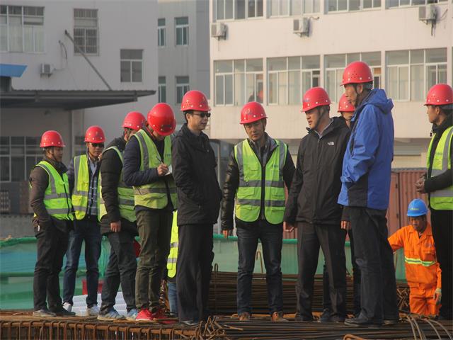 在銅陵路高架項目部,戴總一行深入施工現(xiàn)場,聽取了項目負責人關(guān)于主體施工安全、質(zhì)量和現(xiàn)場文明施工情況的匯報,并和現(xiàn)場技術(shù)人員進行了親切交談。戴總強調(diào):項目部要科學組織,周密部署,保證“安全、質(zhì)量、進度、效益、信譽”工作目標的實現(xiàn),嚴把過程控制和工序銜接,加大對各施工隊伍的管理和服務力度;希望項目部職工開拓創(chuàng)新、砥礪前行,發(fā)揚年輕人有朝氣、有活力、有干勁的精神,努力做好本職工作,并在工作中多鍛煉,積極進步。