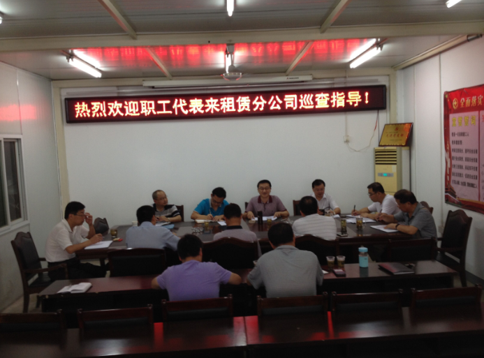 7月18日,公司紀(jì)委書記、工會(huì)主席干戈率職工代表巡視組到租賃分公司檢查工作,圍繞公司2017年重點(diǎn)工作、總經(jīng)理報(bào)告、黨委書記講話、公司制度及職工代表提案落實(shí)情況進(jìn)行巡查并召開座談會(huì)。公司工會(huì)副主席殷陽(yáng)明、技術(shù)中心副主任程正旺、黨委工作部副主任許志興隨同,租賃分公司班子成員及部門負(fù)責(zé)人參加座談。