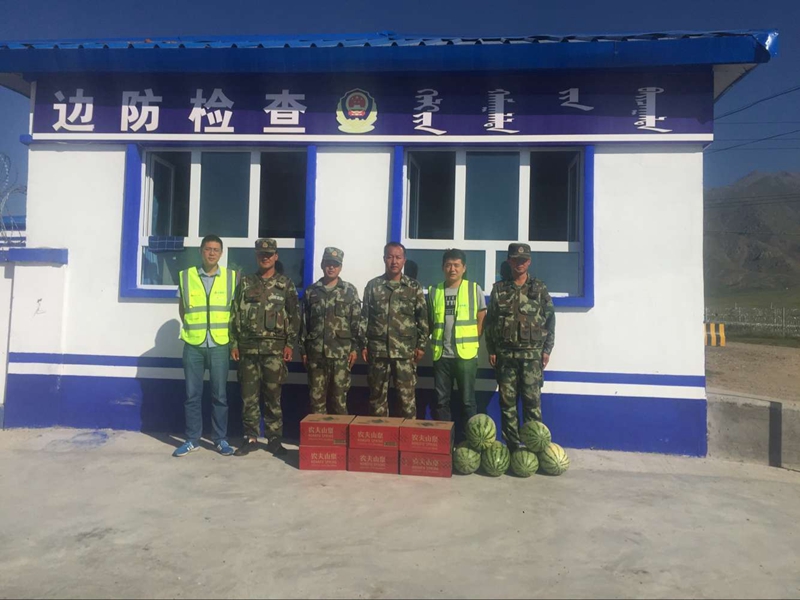 為慶祝中國人民解放軍建軍90周年,增進(jìn)軍民深厚情誼,7月30日下午,帶著對人民子弟兵的深情厚誼和崇高敬意,安徽路港博州國防路項目部給博樂市邊防大隊、溫泉縣邊防大隊及沿線各個邊境檢查站的邊防官兵送上了安徽建工職工對人民子弟兵濃濃的節(jié)日祝福,并向官兵們贈送了羊肉以及礦泉水、西瓜等慰問品。邊防官兵對項目部的慰問表示由衷感謝,表示將一如既往支持地方各項建設(shè),為社會穩(wěn)定和企業(yè)開展正常的施工生產(chǎn)保駕護(hù)航。