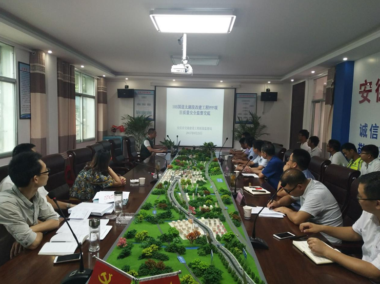 8月25日,安慶市交通質(zhì)量監(jiān)督局檢查組一行赴105國道太湖段改建工程PPP項(xiàng)目進(jìn)行督查,太湖安建投資公司總經(jīng)理朱小敏、副總經(jīng)理曹友良、項(xiàng)目部負(fù)責(zé)人等陪同。
