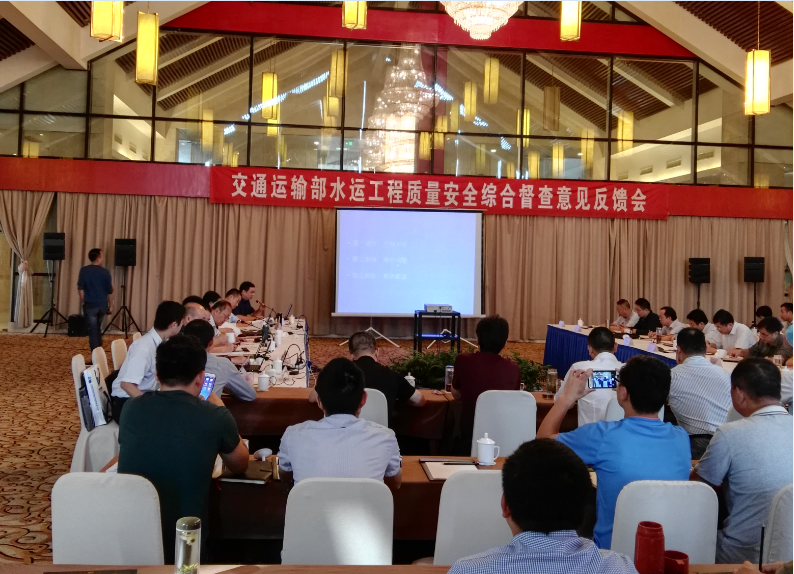 (圖為交通運(yùn)輸部水運(yùn)工程質(zhì)量安全綜合督察匯報(bào)會現(xiàn)場)