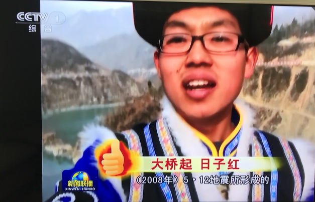 欄目以民生視角,報道了綿陽市北川桃龍藏族小伙尹超,春節(jié)回家?guī)е胰艘黄饋淼教萍疑窖呷绾髽蚴┕がF(xiàn)場,喜看家鄉(xiāng)災(zāi)后重建變化的情景。“看著橋非常的漂亮非常的宏偉,我心里非常的高興,就像咱們的羌紅一樣紅紅火火,同時也想為咱們的建筑工人點(diǎn)贊?!币f。