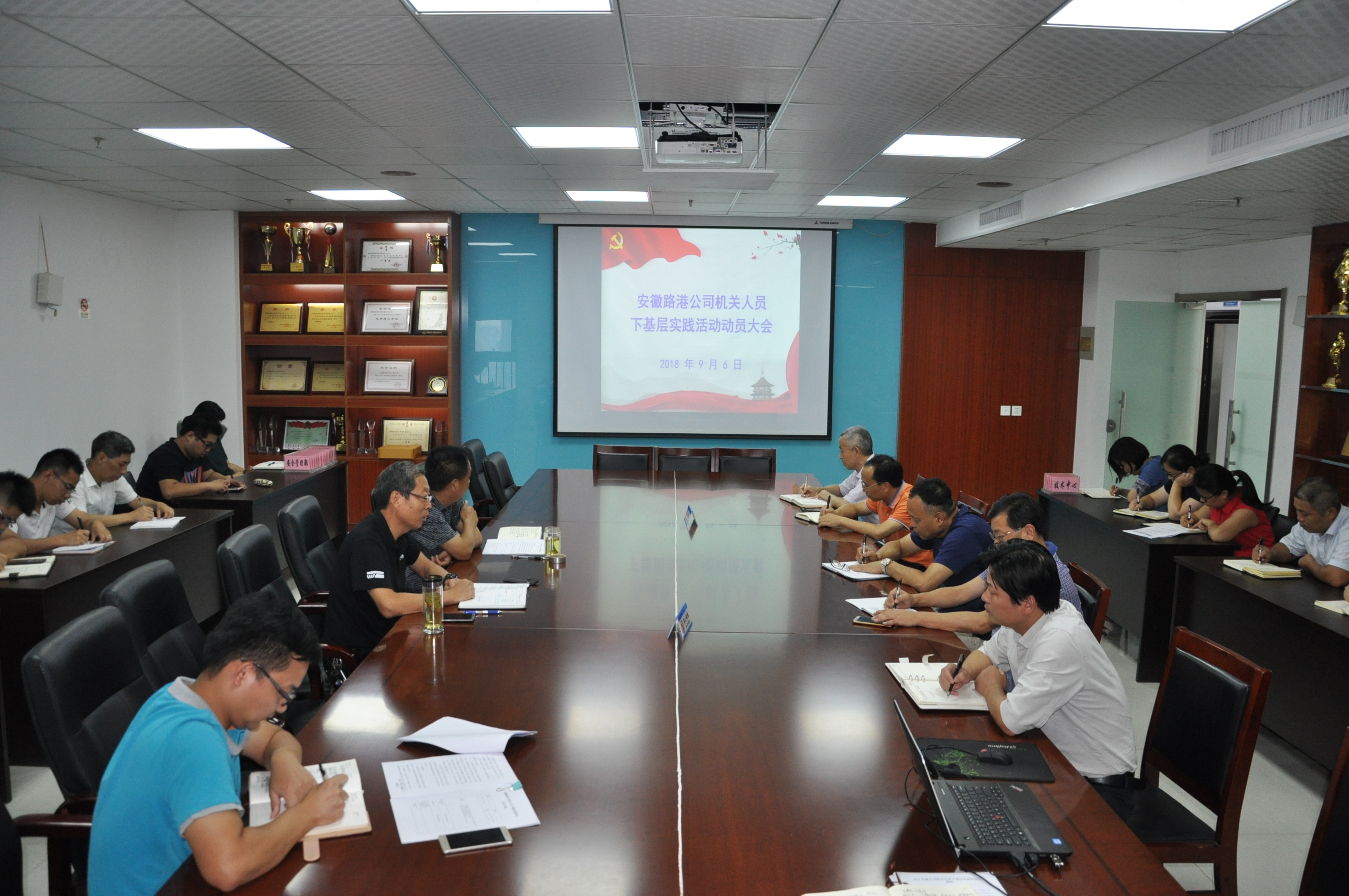 9月6日下午,安徽路港公司在安建大廈23樓會議室召開機關人員下基層實踐活動動員大會,公司董事長李振標、黨委書記馬斌出席會議并作動員講話,機關各部門首批下基層人員參加會議。