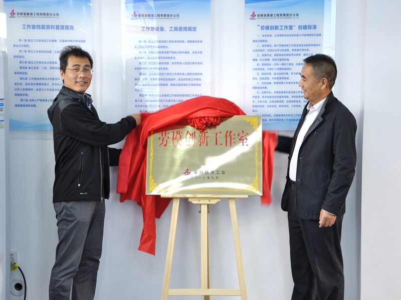 為擴(kuò)大科技創(chuàng)新工作參與面,提升員工隊(duì)伍素質(zhì),增強(qiáng)公司核心競(jìng)爭(zhēng)力,10月17日上午,安徽路港“蘇穎勞模創(chuàng)新工作室”正式揭牌成立,省建設(shè)建材工會(huì)副主任葉雪清,集團(tuán)公司總工辦主任陳剛、工會(huì)主管楊松蒞臨指導(dǎo),公司黨委書(shū)記馬斌出席揭牌儀式,儀式由公司紀(jì)委書(shū)記、工會(huì)主席干戈主持。
