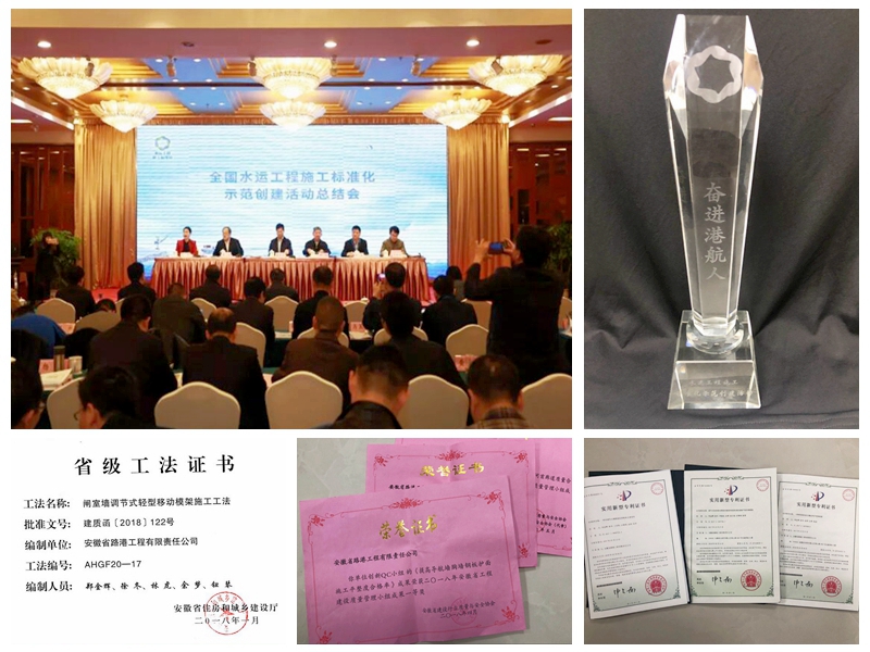 交通運(yùn)輸部于2015年部署開(kāi)展水運(yùn)工程施工標(biāo)準(zhǔn)化示范創(chuàng)建活動(dòng),三年來(lái),安徽路港公司依托楊橋船閘南坪船閘等在建項(xiàng)目,扎實(shí)開(kāi)展水運(yùn)工程施工標(biāo)準(zhǔn)化示范創(chuàng)建,編制完成《安徽省船閘工程施工標(biāo)準(zhǔn)化建設(shè)指南》,成立《提高船閘閘首廊道質(zhì)量合格率》《閘室墻大面平整度合格率控制》《提高導(dǎo)航墻胸墻鋼板護(hù)面施工平整度合格率》3項(xiàng)課題攻關(guān)QC小組,獲得中國(guó)水運(yùn)工法1項(xiàng)、省級(jí)工法3項(xiàng)、企業(yè)工法4項(xiàng)、實(shí)用新型專利5項(xiàng)、發(fā)明專利3項(xiàng),淘汰落后工藝2項(xiàng),發(fā)表優(yōu)秀論文多篇,為全國(guó)性水運(yùn)工程施工標(biāo)準(zhǔn)化指南體系提供了依據(jù)和參考。