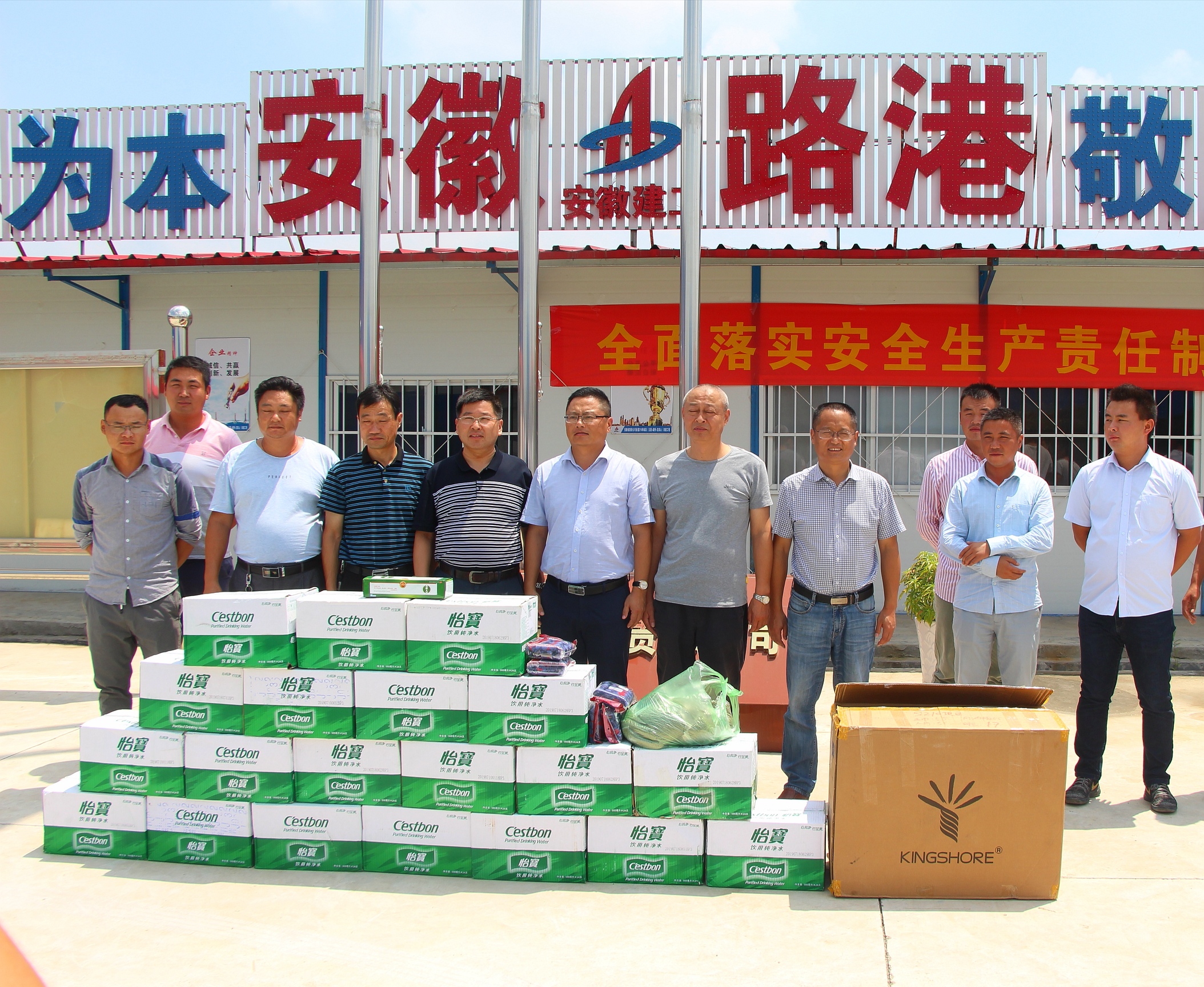 8月5日上午,和縣交通局局長李善、公路局局長李必和一行赴S210項(xiàng)目開展“送清涼”慰問活動,為高溫中堅守崗位的一線工人送來了毛巾、綠豆、白糖、人丹、礦泉水等防暑降溫用品。