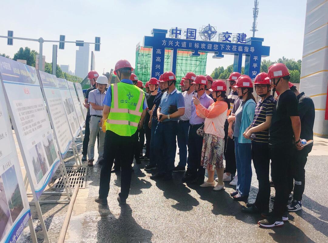 觀摩過程中,大家認(rèn)真聽取中交一公局項目管理人員關(guān)于綠色施工技術(shù)、施工現(xiàn)場文明施工、橋跨結(jié)構(gòu)標(biāo)準(zhǔn)化施工、三級沉淀系統(tǒng)、圍擋噴淋、滿堂支架搭設(shè)等安全管理經(jīng)驗的介紹,并現(xiàn)場進(jìn)行了學(xué)習(xí)記錄。