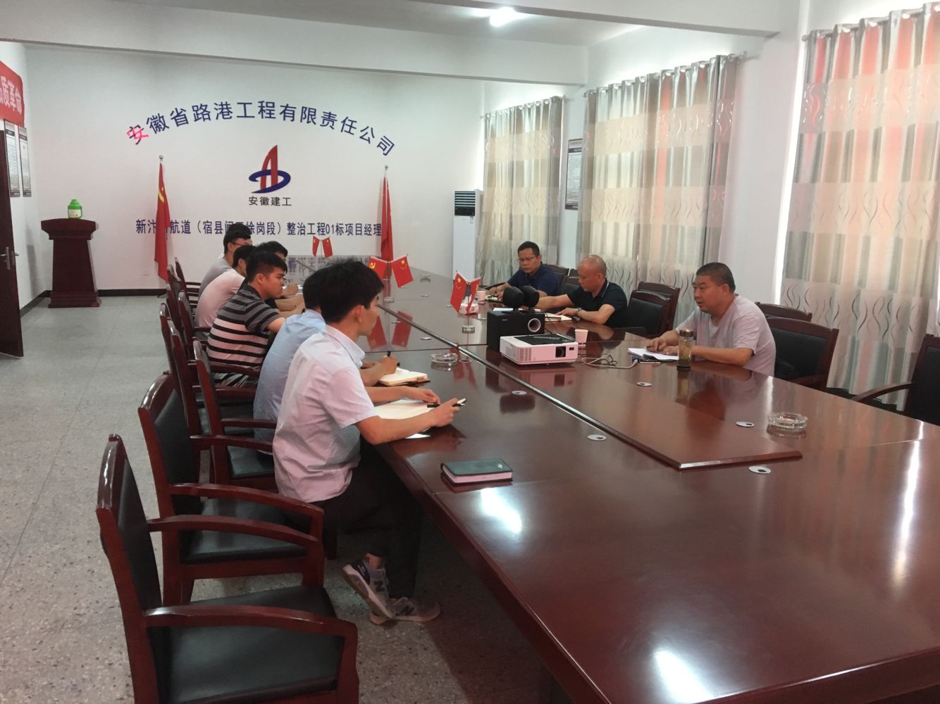 在靈璧船閘項目部,章興紅一行就“安全月”活動開展情況、落實年度產(chǎn)值任務計劃情況及財務工作等進行調(diào)研,并召開座談會。會議聽取了項目概況、工程進度、產(chǎn)值目標完成情況、影響產(chǎn)值的因素及應對措施等匯報。就“安全月”活動開展、現(xiàn)場檢查及內(nèi)業(yè)資料檢查中發(fā)現(xiàn)的問題,會議指出,一是增設安全標志標牌;二是盡量避開高溫作業(yè)時間,做好夏季防暑降溫和防汛安全工作;三是做好特種作業(yè)人員操作證登記工作。會議要求,一是加強地方協(xié)調(diào),加快推進工程進度,確保完成年度產(chǎn)值目標任務;二是積極做好項目部與分公司之間的溝通工作,確保工程順利推進;三是積極做好項目部財務工作。
