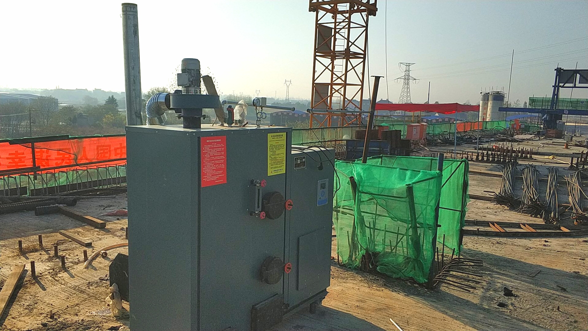 為了不斷優(yōu)化施工工藝,針對掛籃懸澆冬季施工養(yǎng)生,項目部采用大型生物質(zhì)顆粒加熱蒸氣養(yǎng)護設備對懸澆號段進行養(yǎng)生,在加快施工進度的同時保護生態(tài)環(huán)境。