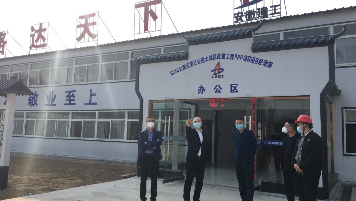 3月18日,安建投資公司總經(jīng)理朱忠明赴S246太湖至望江公路PPP項目調(diào)研指導防疫復產(chǎn)工作。