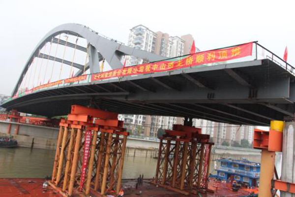 該項目在施工過程中采用的大跨徑鋼拱橋躉船支點轉(zhuǎn)換頂推施工技術(shù)屬國內(nèi)首例,國際領(lǐng)先,被蕪湖電視臺聚焦報道,并榮獲安徽省省級工法、交通運輸部中國公路工法、安徽省交通科技進步獎、中國公路科學(xué)技術(shù)進步獎。