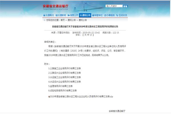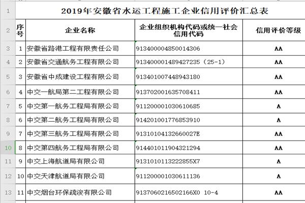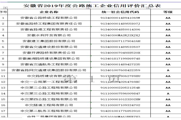 近日,安徽省交通運輸廳發(fā)布我省2019年度公路水運工程信用評價結(jié)果的公告,安徽省路港工程有限責(zé)任公司公路和水運施工企業(yè)信用評價同時榮獲AA級。