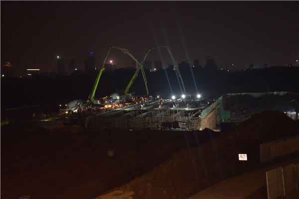 明光市嘉山大道上跨高速公路橋項目連續(xù)多天上演“奮戰(zhàn)雨天,鏖戰(zhàn)黑夜”的搶工景象。二季度計劃產(chǎn)值2160萬元,實際完成產(chǎn)值2863.91萬元,完成132.58%。主橋承臺施工計劃工期65天,實際工期42天,比計劃提前22天。