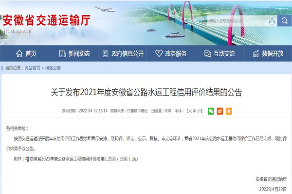 公司獲得2021年度公路、水運(yùn)、養(yǎng)護(hù)信用評(píng)價(jià)AA等級(jí)