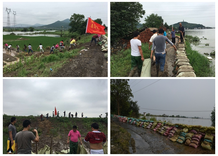 2016年7月1日,巢湖市境內(nèi)持續(xù)降雨,降雨量在每24小時50mm以上,屬于特大暴雨,項目部沿線的橋梁路基施工段落受影響嚴重。項目團支部立即成立了抗洪救險青年突擊隊,向每一名隊員發(fā)出了“做建工優(yōu)秀青年,打贏防汛攻堅戰(zhàn)”的號召。青年突擊隊員們發(fā)揚“召之即來,來之能戰(zhàn),戰(zhàn)之能勝”的精神,快速響應(yīng),奔赴抗洪一線。石黃路為當?shù)氐某鲂幸?,為保護當?shù)厝罕娚敭a(chǎn)安全,保障車輛的正常通行,青年突擊隊員持續(xù)搶險4個小時,堆碼沙袋300余條,保住了這條要道的通暢。
