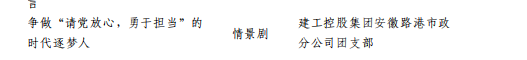 近日,共青團(tuán)安徽省委下發(fā)《關(guān)于第五屆全省“青年之家”優(yōu)秀活動項目、全省優(yōu)秀微團(tuán)課及第一屆全省優(yōu)秀藝術(shù)團(tuán)課評選結(jié)果的通報》。公司團(tuán)委上報的《爭做“請黨放心,勇于擔(dān)當(dāng)”的時代逐夢人》、《中國青年》2項作品均榮獲第一屆全省優(yōu)秀藝術(shù)團(tuán)課二等獎。