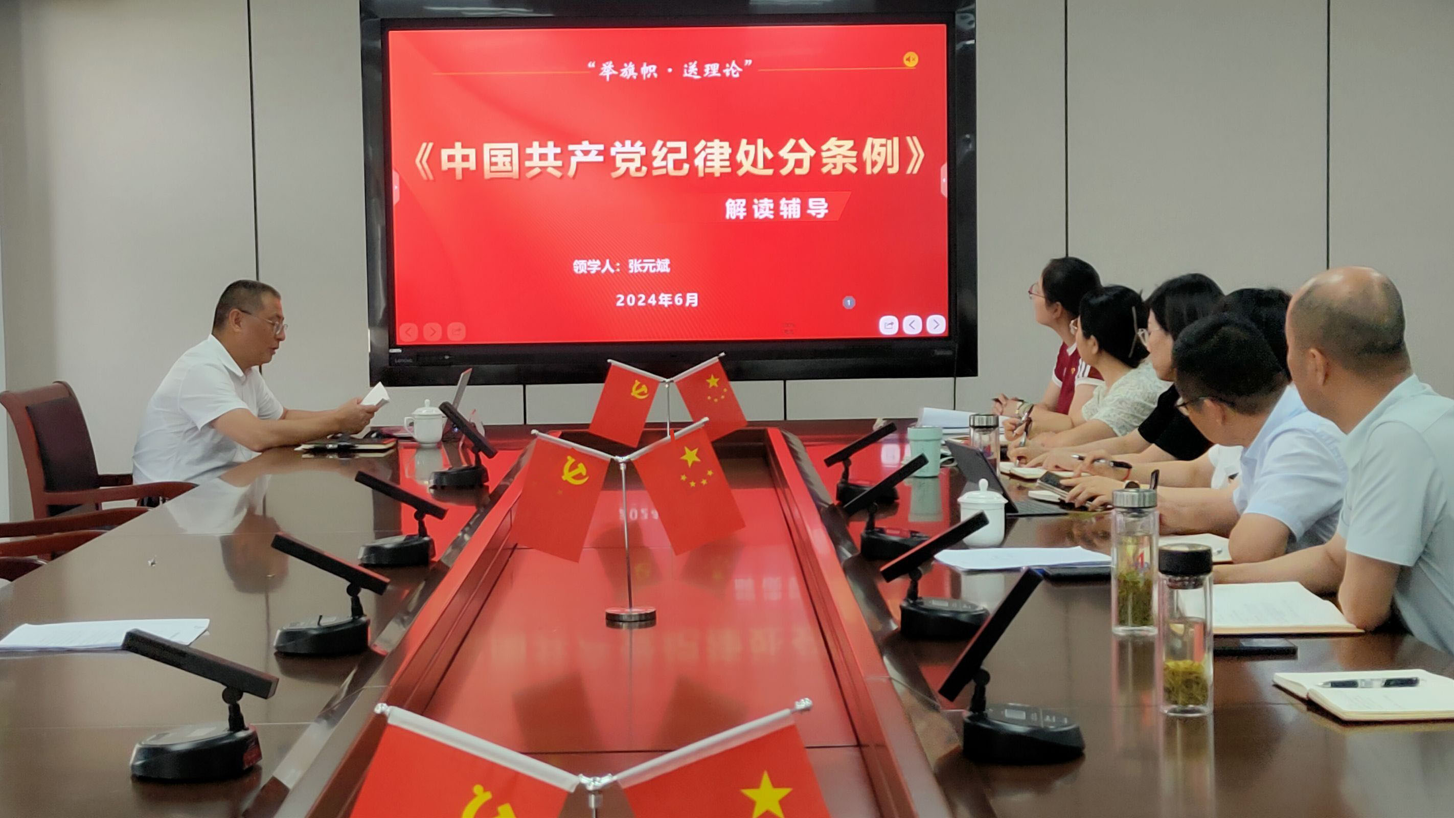 6月11日,公司財(cái)務(wù)總監(jiān)張?jiān)蟾靶虏牧瞎疽浴吨袊伯a(chǎn)黨紀(jì)律處分條例解讀輔導(dǎo)》為題講授黨紀(jì)學(xué)習(xí)教育專題黨課,新材料公司全體黨員參加。