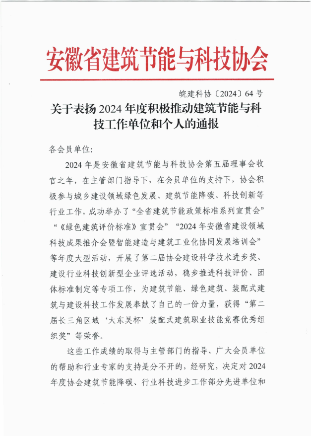 日前,安徽省建筑節(jié)能與科技協(xié)會(huì)發(fā)布通報(bào),安徽省(蕪湖)建筑光儲(chǔ)一體化專業(yè)委員會(huì)被評(píng)為先進(jìn)單位,公司楊海峰被評(píng)為先進(jìn)個(gè)人。