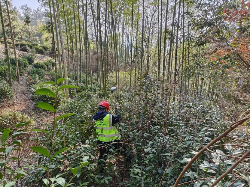 他們相互攙扶、輪番扛儀器,其中有幾個(gè)點(diǎn)在懸崖邊上,為了準(zhǔn)確了解場(chǎng)地現(xiàn)狀并采集準(zhǔn)確可靠的原地面數(shù)據(jù),他們摸索著前進(jìn)、爬上山頂。在山林中穿梭的測(cè)量人用腳步丈量著每一寸土地,用默默無(wú)言的付出、專(zhuān)業(yè)扎實(shí)的能力保障了項(xiàng)目建設(shè)的精度。