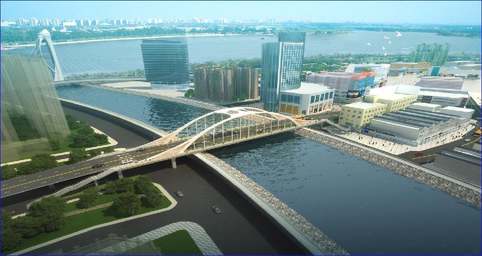 蕪湖中山橋是橫跨青弋江的地標(biāo)性建筑,連接鏡湖區(qū)與弋江區(qū),集商貿(mào)、旅游、交通功能于一體,因與中山路相連,承載紀(jì)念孫中山先生的歷史意義,亦是蕪湖 “半城山半城水” 城市風(fēng)貌的典型象征。橋梁全長(zhǎng)352.9米,主橋?yàn)椋?8+90+28)米系桿鋼結(jié)構(gòu)拱橋。建設(shè)中首創(chuàng)通航水域雙躉船交替沉浮支撐體系,研發(fā)大跨度鋼箱拱橋整體頂推及雙船轉(zhuǎn)換支撐浮推技術(shù),僅用24小時(shí)便完成水上浮船頂推作業(yè),在保障河道通航的同時(shí),實(shí)現(xiàn)了鋼結(jié)構(gòu)橋梁的高效整體安裝,成為城市內(nèi)河通航條件下橋梁水上施工的典范。