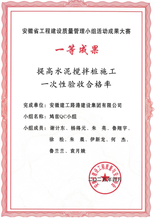 以品質(zhì)為生命線,構(gòu)建全周期質(zhì)量管理體系,在已竣工項(xiàng)目中,派河口船閘項(xiàng)目憑借創(chuàng)新工藝與卓越品質(zhì),一舉攬獲安徽省優(yōu)質(zhì)工程獎(jiǎng)、集團(tuán)“建工杯”;S246太湖PPP項(xiàng)目榮獲安慶市“振風(fēng)杯”質(zhì)量獎(jiǎng)項(xiàng),成為區(qū)域工程建設(shè)的品質(zhì)典范,同時(shí)榮獲安徽省質(zhì)量協(xié)會(huì)QC獎(jiǎng)項(xiàng)4項(xiàng);目前,明光嘉山項(xiàng)目、派河口船閘正全力推進(jìn)2025年“黃山杯”現(xiàn)場(chǎng)核查工作。