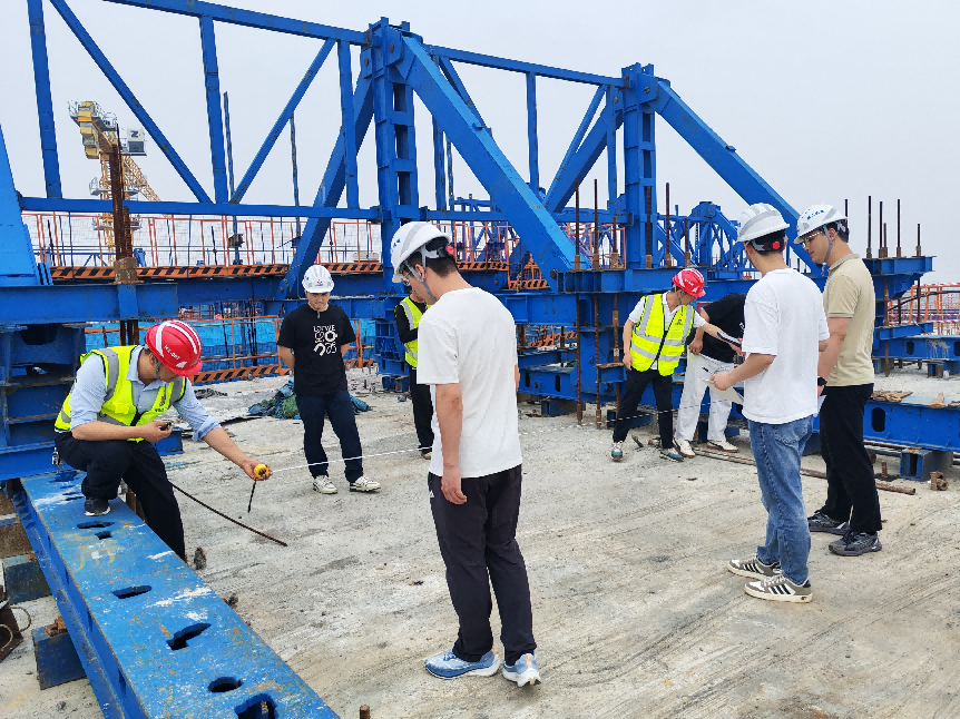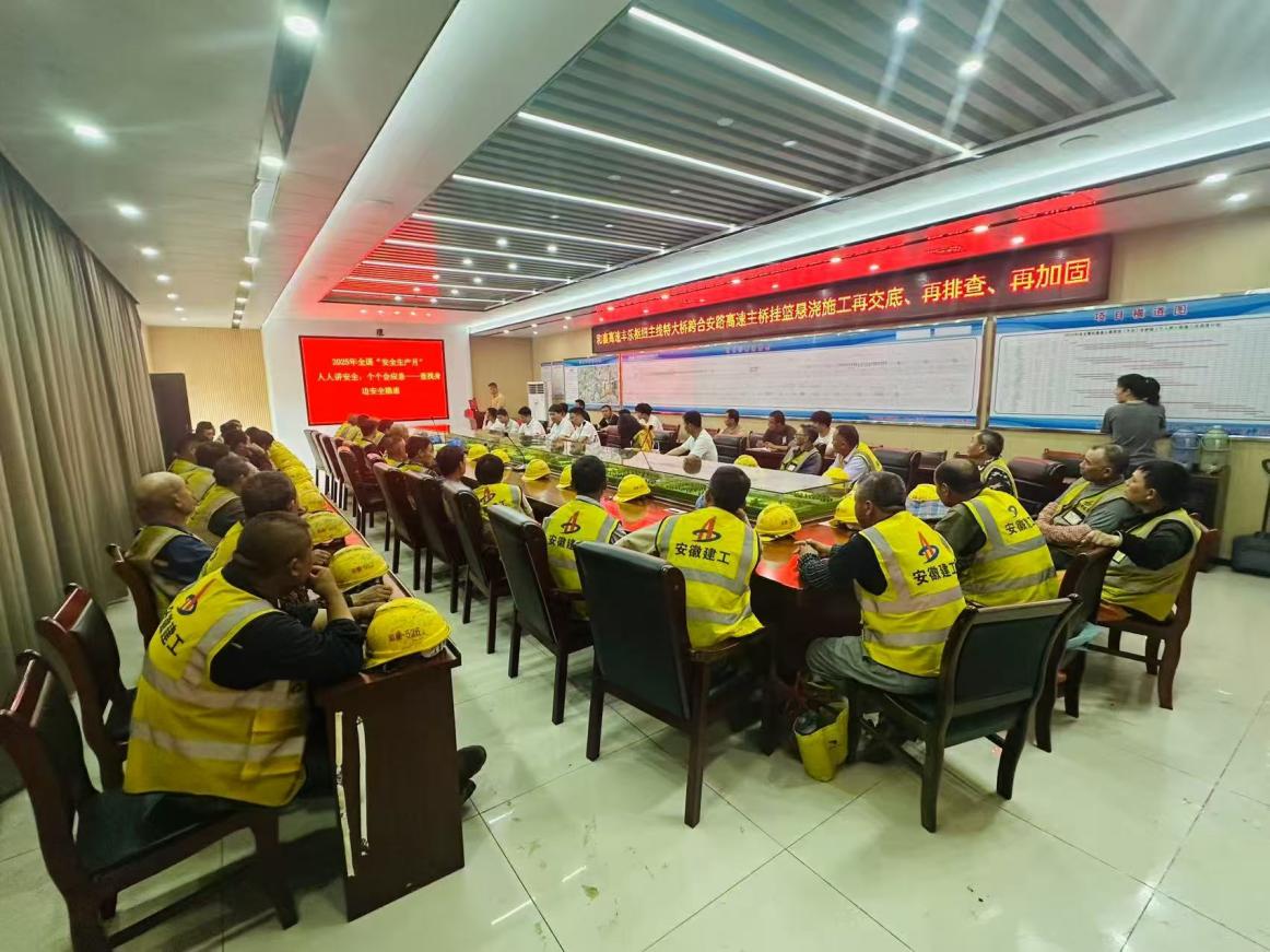 6月19日,在G4222和襄高速項(xiàng)目豐樂樞紐主線特大橋主橋掛籃懸澆即將全面跨合安高速公路施工前,公司科技數(shù)字中心(技術(shù)質(zhì)量部)聯(lián)合港航工程公司在項(xiàng)目部組織開展了掛籃懸澆施工再交底、再排查、再加固。