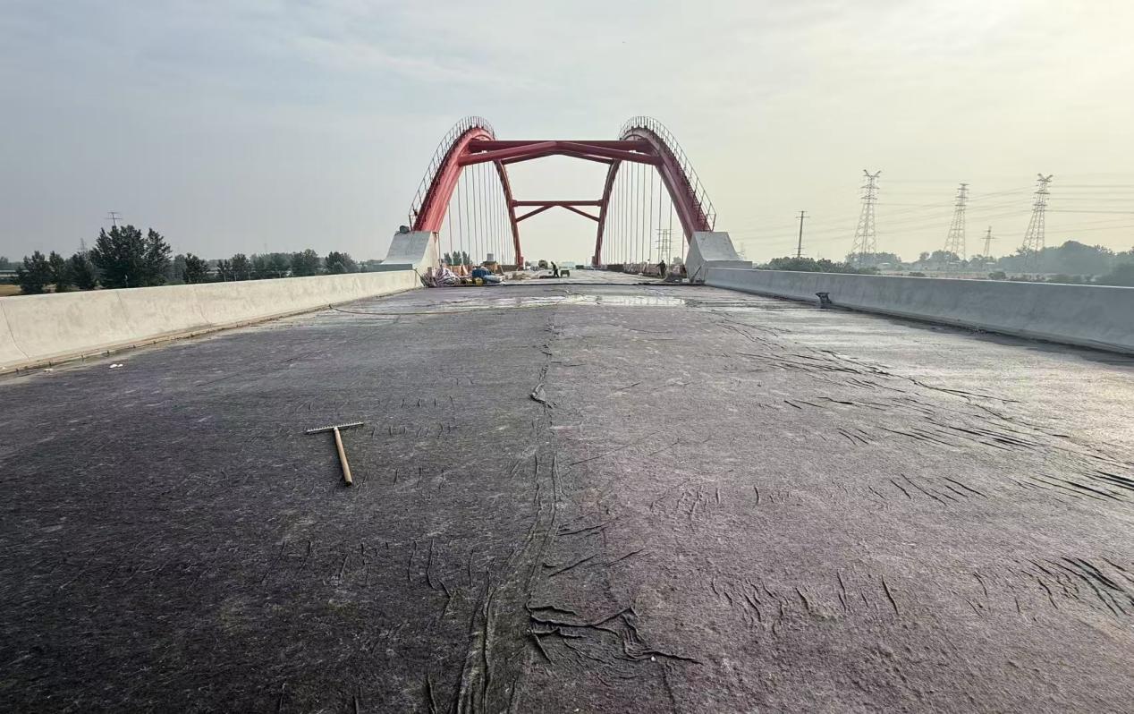 沱澮河航道臨渙碼頭橋是連接安徽旅游十大古村鎮(zhèn)——臨渙古城和淮海戰(zhàn)役總前委指揮部舊址的關鍵要道,橋梁全長507.2m,橋面鋪裝總面積近8000㎡,施工期正值高溫季節(jié)。