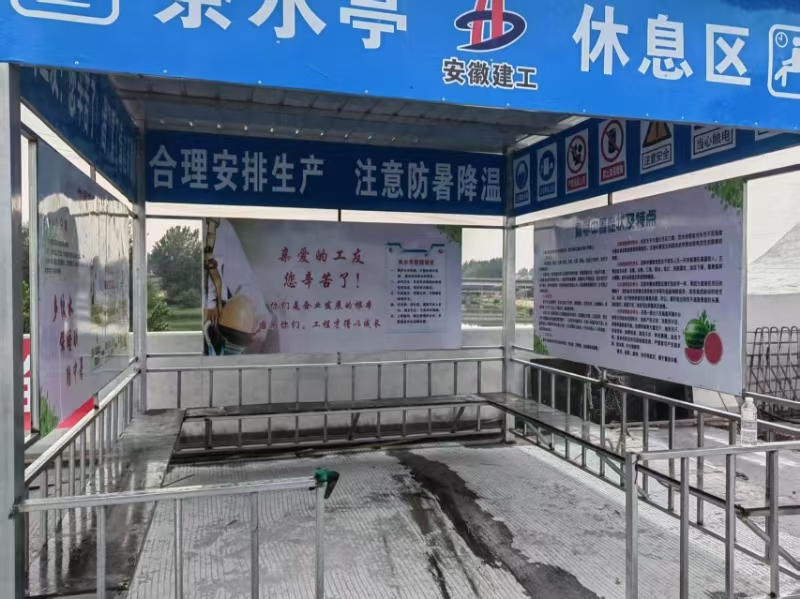 面對動輒突破40攝氏度的“炙烤模式”,項目部科學部署、精準施策,打響了一場與烈日爭分奪秒的硬仗。一是現(xiàn)場足量供應鹽汽水、藿香正氣水等防暑降溫物資。二是搭設多處遮陽棚供作業(yè)人員輪換休息,專職安全員全程巡查,嚴防中暑。三是靈活調整作業(yè)時間,采取“抓兩頭、歇中間”策略,確保工程高效推進。