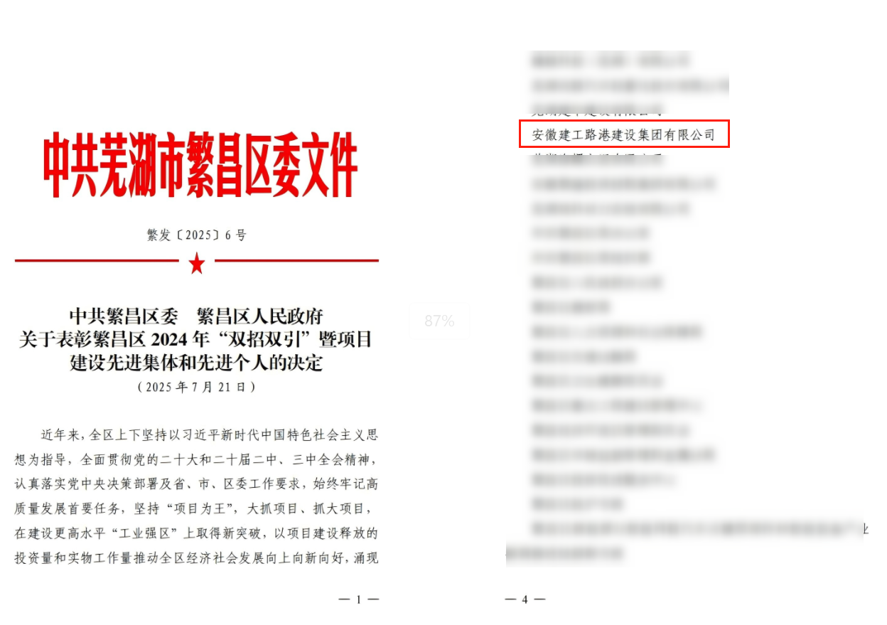 日前,繁昌區(qū)發(fā)改委會同區(qū)委組織部(人才辦)、區(qū)投促中心開展2024年繁昌區(qū)“雙招雙引”暨項(xiàng)目建設(shè)先進(jìn)集體和先進(jìn)個人評選并公布了表彰名單,建工路港公司榜上有名。