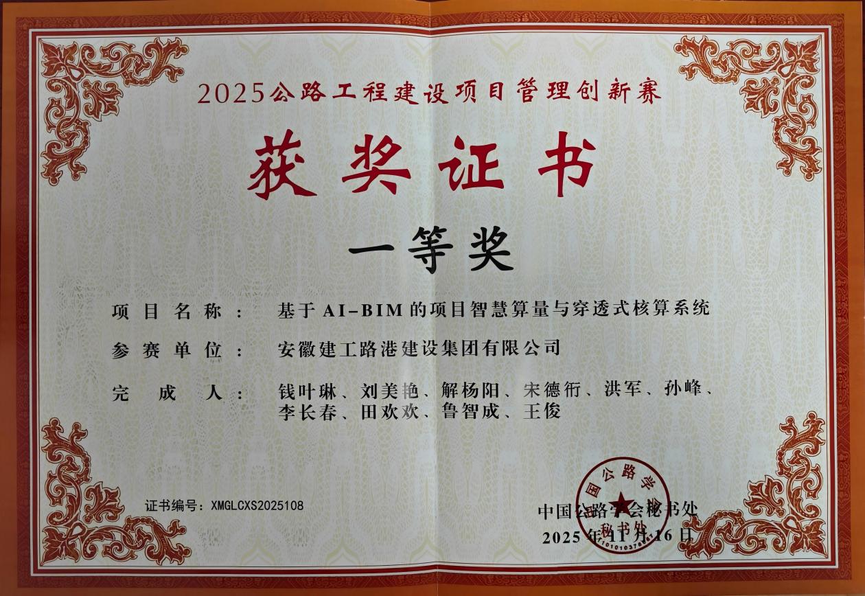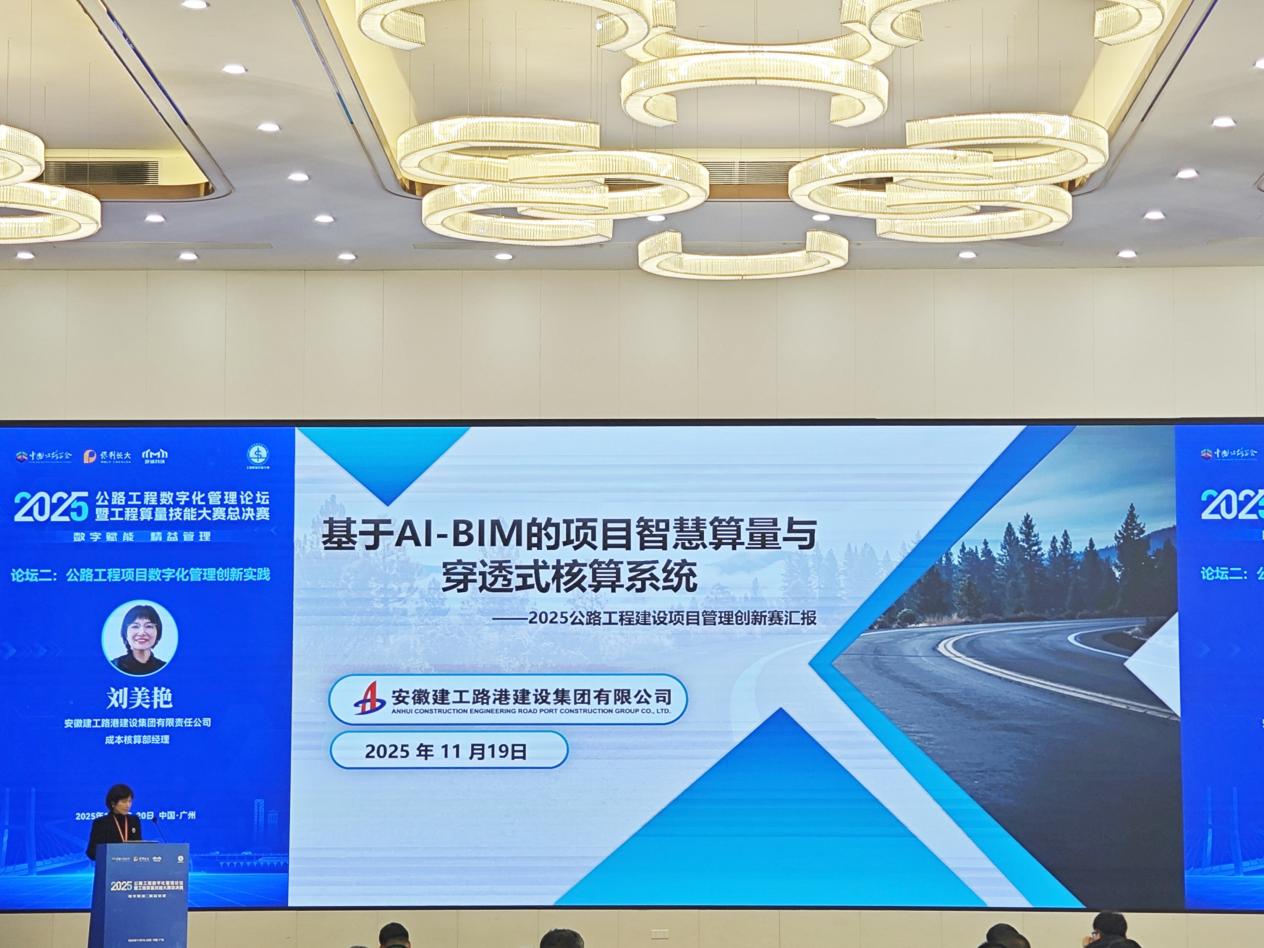近日,中國(guó)公路學(xué)會(huì)主辦的2025公路工程建設(shè)項(xiàng)目管理創(chuàng)新賽在廣州成功舉辦,建工路港公司憑借“基于AI-BIM的項(xiàng)目智慧算量與穿透式核算系統(tǒng)”創(chuàng)新型項(xiàng)目,在197個(gè)參賽項(xiàng)目中脫穎而出,榮獲創(chuàng)新賽一等獎(jiǎng),得到中國(guó)公路學(xué)會(huì)各位評(píng)審專家的高度認(rèn)可。