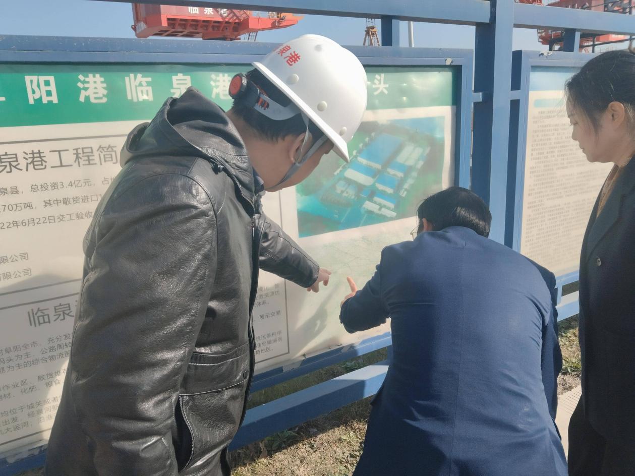 馬占軍一行先后參觀了碼頭裝卸作業(yè)區(qū)、倉庫堆場區(qū),聽取了關(guān)于臨泉港當(dāng)前運營規(guī)模、核心優(yōu)勢、重點航線網(wǎng)絡(luò)以及未來發(fā)展規(guī)劃的匯報。參觀過程中,馬占軍一行對港口的吞吐能力、作業(yè)效率、綠色環(huán)保舉措以及依托港口發(fā)展的臨港工業(yè)、新能源等新興產(chǎn)業(yè)表示了肯定,并就碼頭多式聯(lián)運體系建設(shè)、港口與屬地經(jīng)濟聯(lián)動、貨種裝卸存儲方案等具體問題與港口管理及技術(shù)人員進行了深入交流。